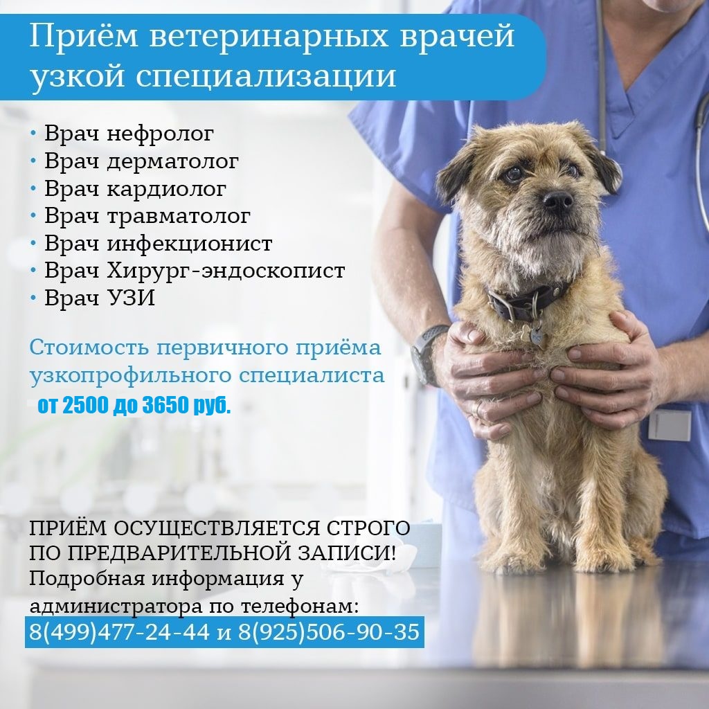 Приём ветеринарных врачей узкой специализации от 2500 рублей!
